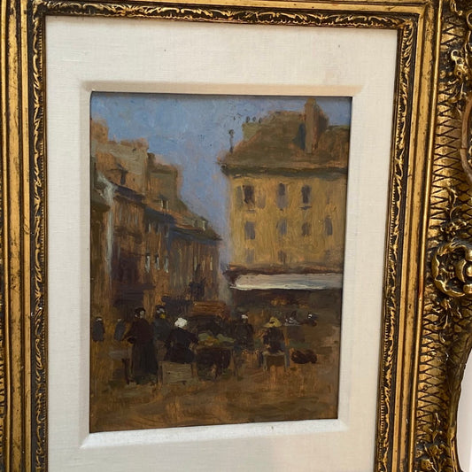 AFTERNOON AT CHERBOURG MARKET FIGURES IN A SQUARE, CANADIAN PAINTING.