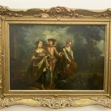 18TH C FETES GALANTE SCENE LOVERS IN THE GARDEN att. JEAN-ANTOINE WATTEAU