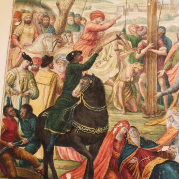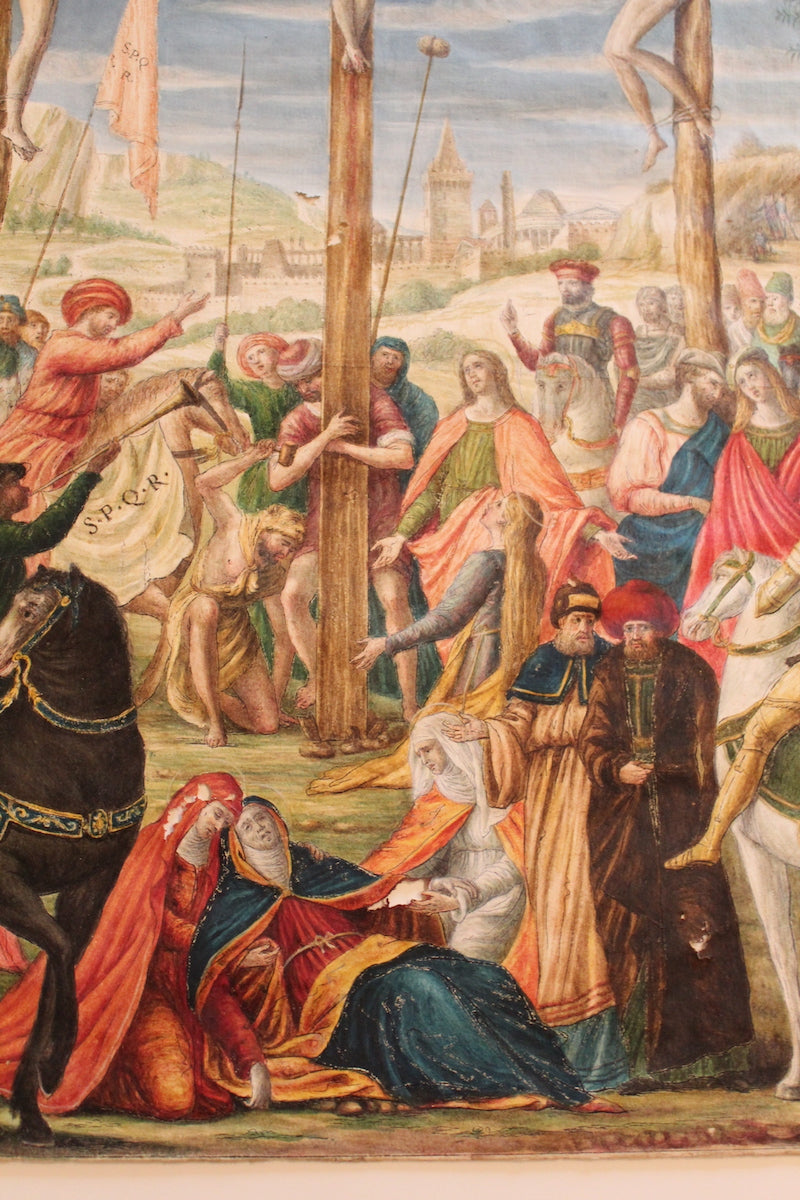 Gorgeous 18th original coloured Drawing After Raphael Sanzio, ” Christ Between Two Thieves. ”