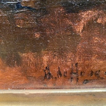 The last few years as a student were made easier by his success in gaining the subsidy from the Dutch Queen, which he held for two years. He worked for some time under one of the greatest Dutch animal painters, Jan van Essen, and copied many of the old masters, such as Pieter de Hooch and Frans Hals. His painting from nature enabled him to understand the old masters. During the year 1886 De Hoog’s talent became noticed. He had admired the paintings of Jozef Israëls and Albert Neuhuys. The first great picture that he exhibited was shown in Amsterdam, entitled ‘During the Sermon in the new Church’.